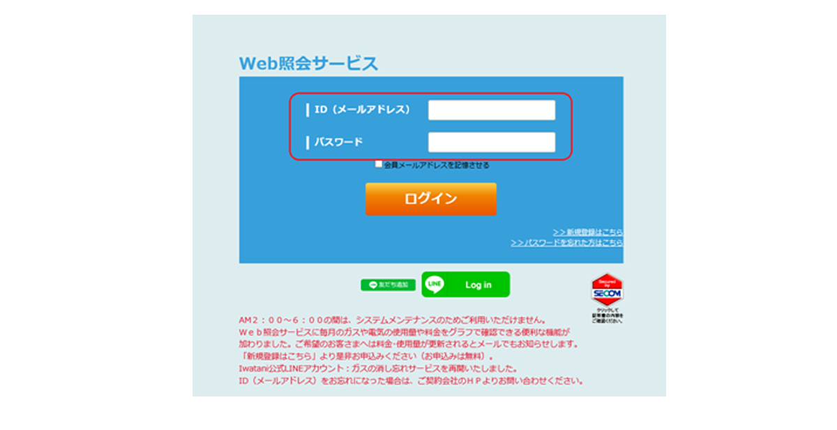 申し込み画面で入力したID、パスワードを入力してログインしてください